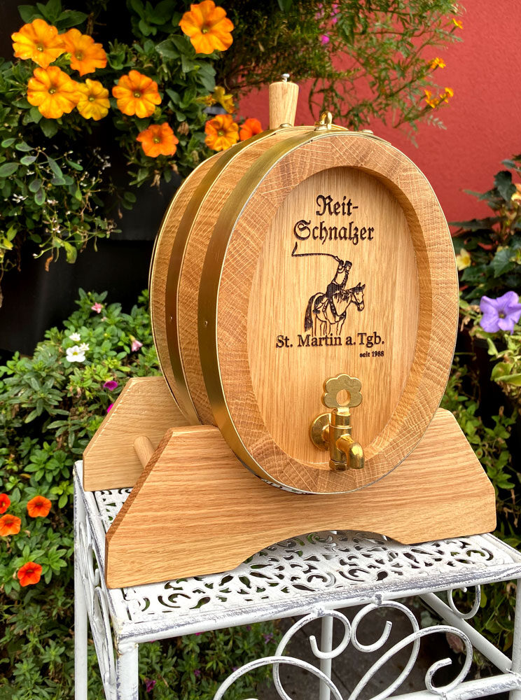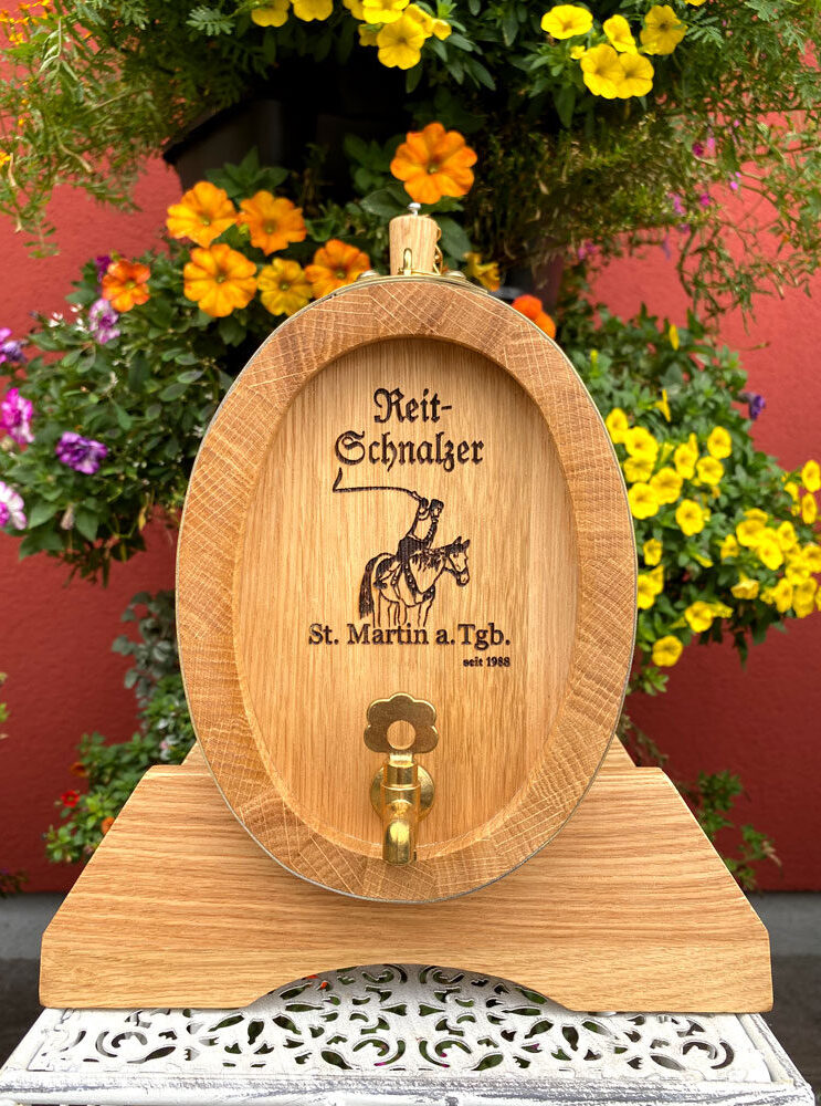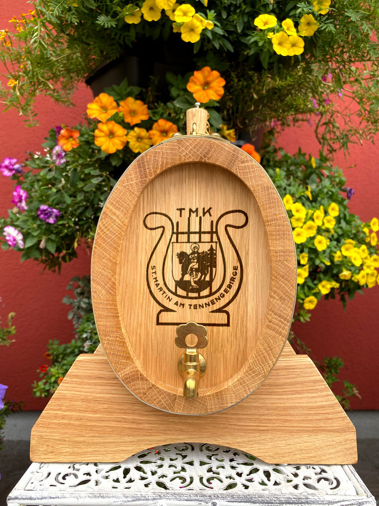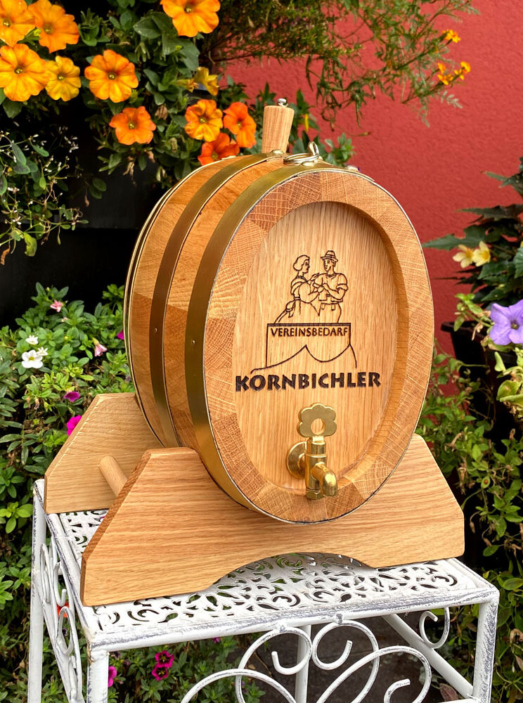 Unsere hochwertigen Marketenderfässer sind mit Messingreifen „umwickelt“ und mit einer Messingpipe ausgestattet. Wir bieten auch Stamperl aus Edelstahl und Zinn an.
